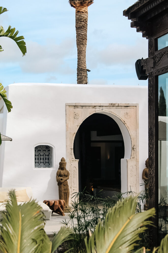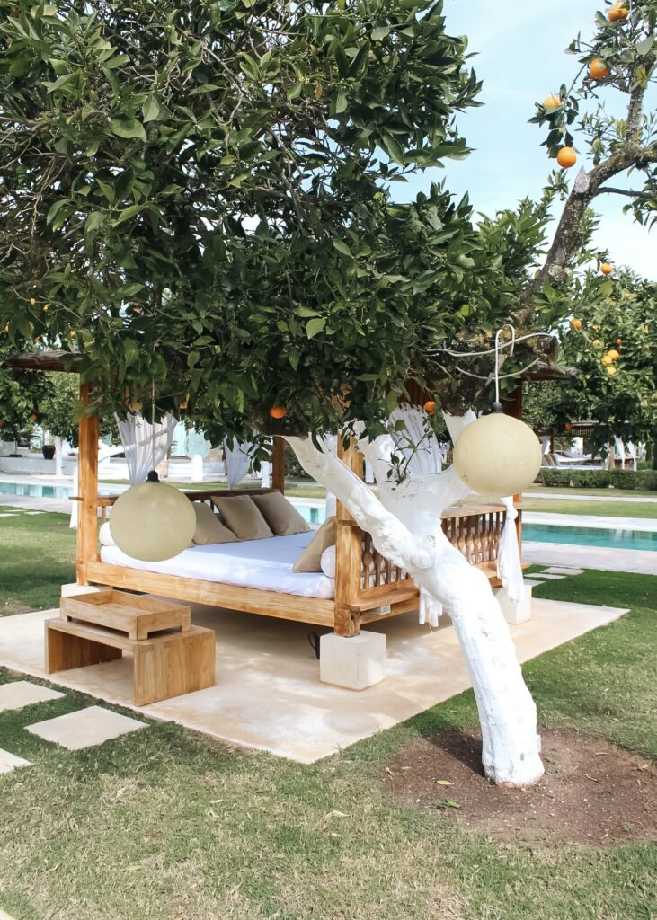 La brezza ondeggia le fronde delle palme chiacchierine, il cinguettio degli uccelli e l’assolo del gallo risuonano nel silenzio della campagna ibizenca di Sant Eulalia des Rius. Una splendida vecchia finca spunta in un mare di aranceti, natura profumata di agrumi ed erbe aromatiche degli orti in una tenuta di tredici ettari. Botanica contadina tra patii, laghetti e piscine ispirate a spazi andalusi e a sogni d’oriente, ed è così che il legame con la terra diventa esclusività, l’archetipo dell’essenziale rivela un nuovo concetto di lusso.