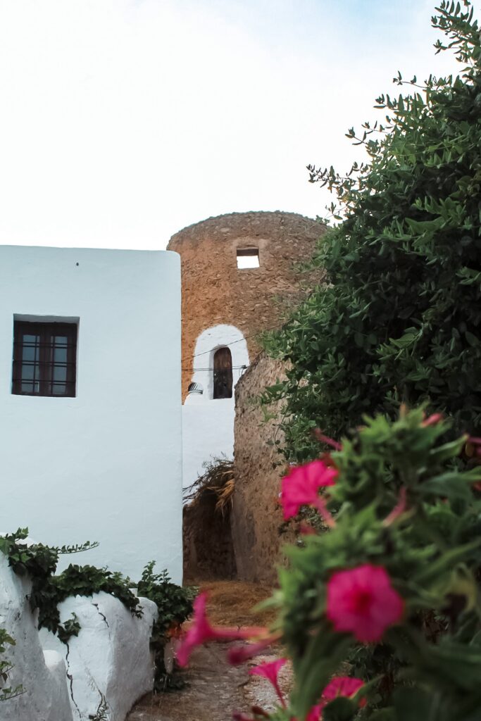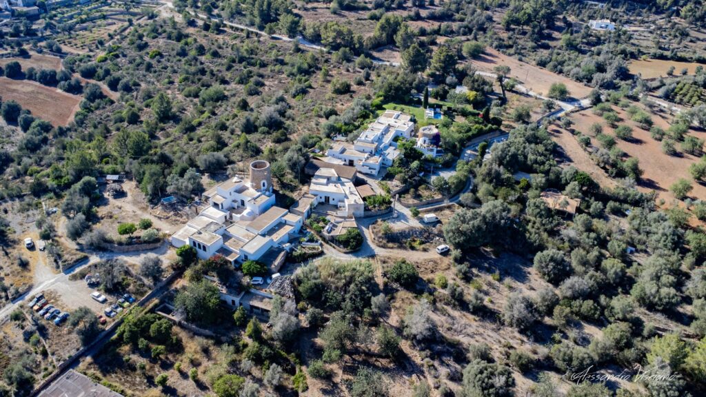 Nell’idilliaca campagna ibizenca, si trova un grappolo di case troneggiate da torri circolari, un tempo rifugio dai pirati