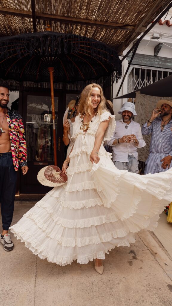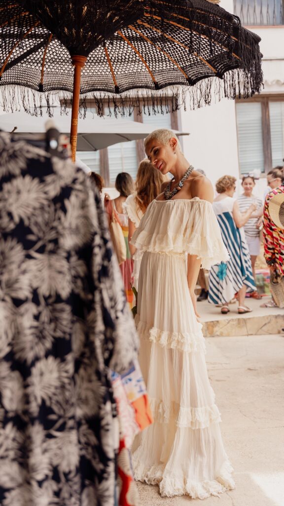 Ogni anno dedichiamo un paio di mesi alla ricerca e all’acquisto di nuovi tessuti e accessori viaggiando e scoprendo diversi angoli di mondo, ma anche traendo ispirazione da ciò che l’isola ci offre. È una ricerca che ci attrae ad altre culture e ci insegna ad amare e condividere, creando così una collezione sempre molto versatile, facile da indossare in diversi contesti, sia qui a Ibiza che in altre grandi città, perché saper indossare qualcosa, alla fine, non è altro che un atteggiamento… un’attitude che ognuno ha, basta solo rendersene conto. Per questo desidero continuare la mia attività per molti anni ancora, dedicandomi a vestire tutti coloro che passano dalla nostra boutique. Sono già 25 anni, e sono molto grata a chi mi hanno dato fiducia e continuano a sostenermi.