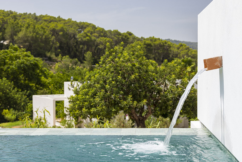 La piscina a sfioro è uno di quei dettagli che passano inosservati all’inizio, ma che nascondono un ammiccamento molto speciale: il suo design si ispira alle antiche vasche e ai sistemi di irrigazione lasciati dagli arabi, che hanno segnato profondamente il modo di vivere la campagna ibizenca.