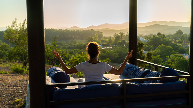 Oltre alle passeggiate, molti ospiti praticano sessioni di yoga all’aperto su piattaforme di legno accanto alla piscina, integrate nel paesaggio.