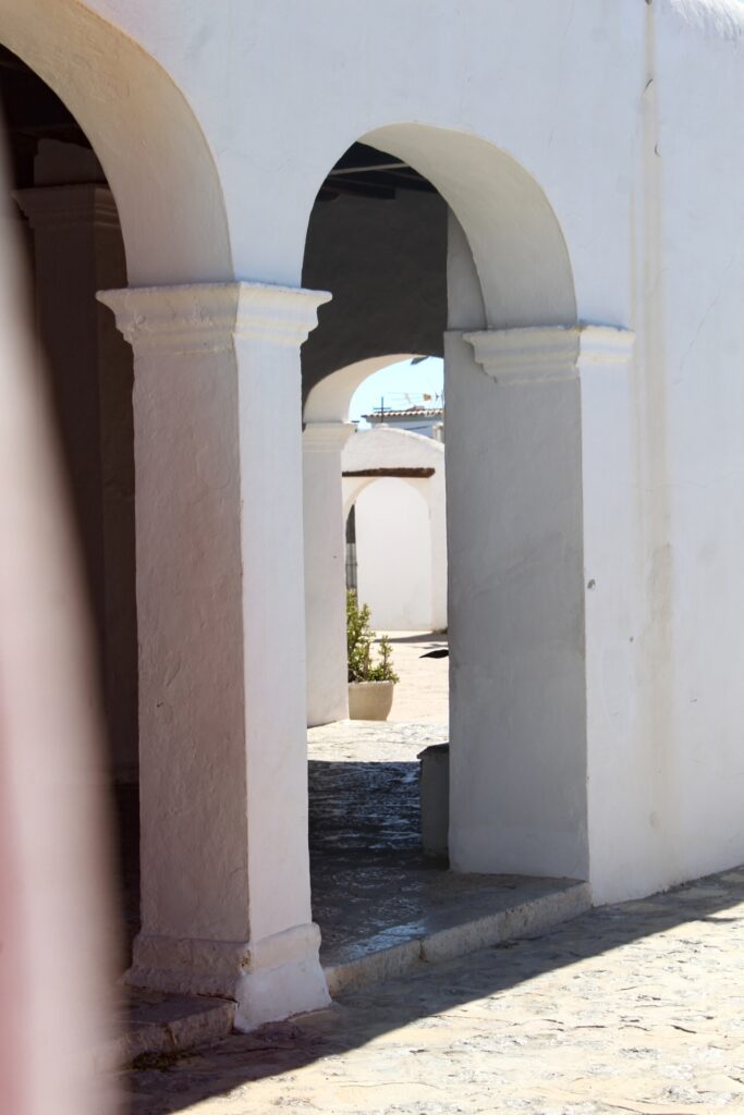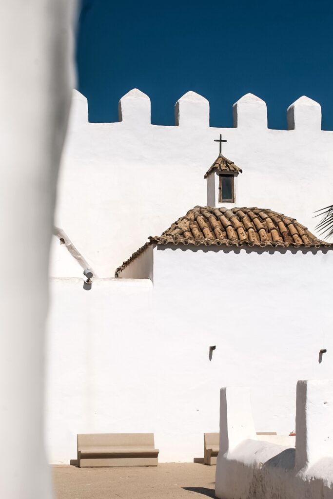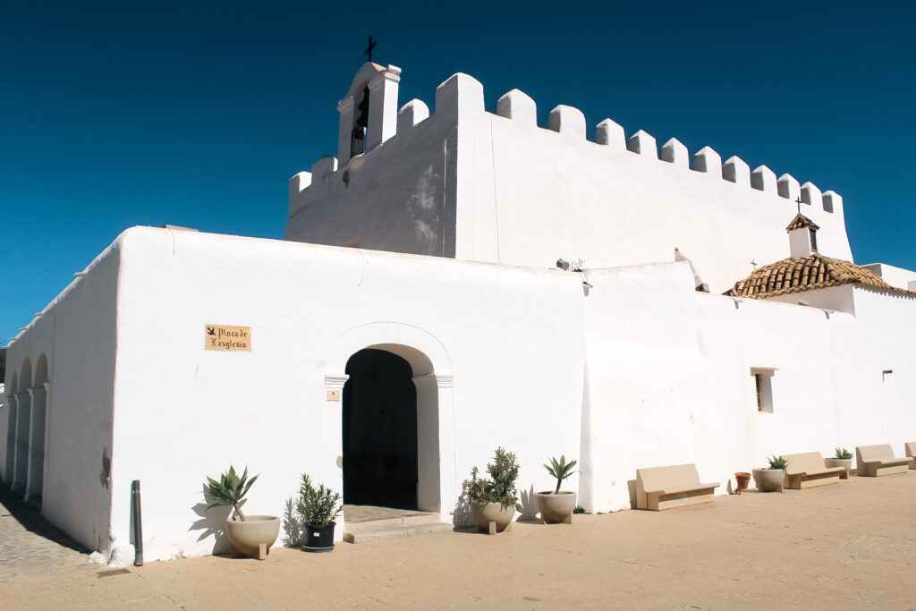 Le “chiese-fortezza” sono una peculiarità dell’isola di Ibiza, luoghi di preghiera che al tempo delle incursioni corsare turche e barbaresche del XVI secolo, offrivano un riparo sicuro agli abitanti dell’isola. Se ne contano quattro in tutto il territorio: la chiesa di Santa Eulària, di Sant Antoni, di Sant Miquel, e di Sant Jordi. Quest’ultima è una delle più antiche, ma la caratteristica principale che la rende unica è data dalla particolare struttura che ricorda un vero e proprio “castello” in miniatura.