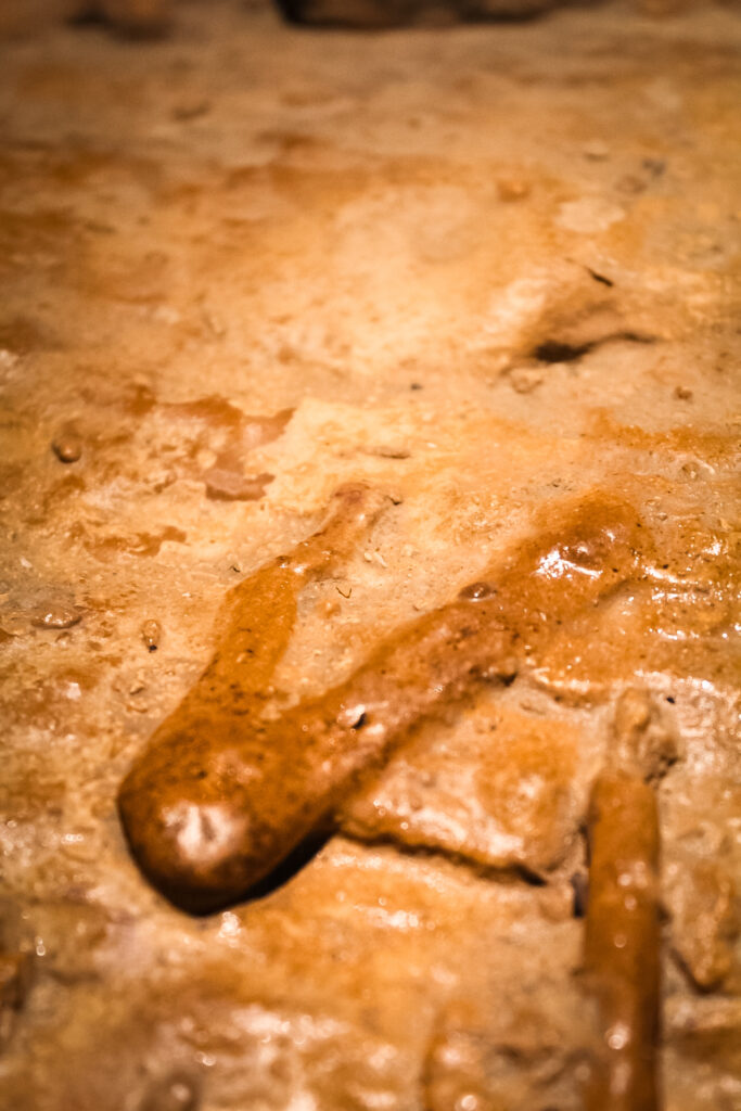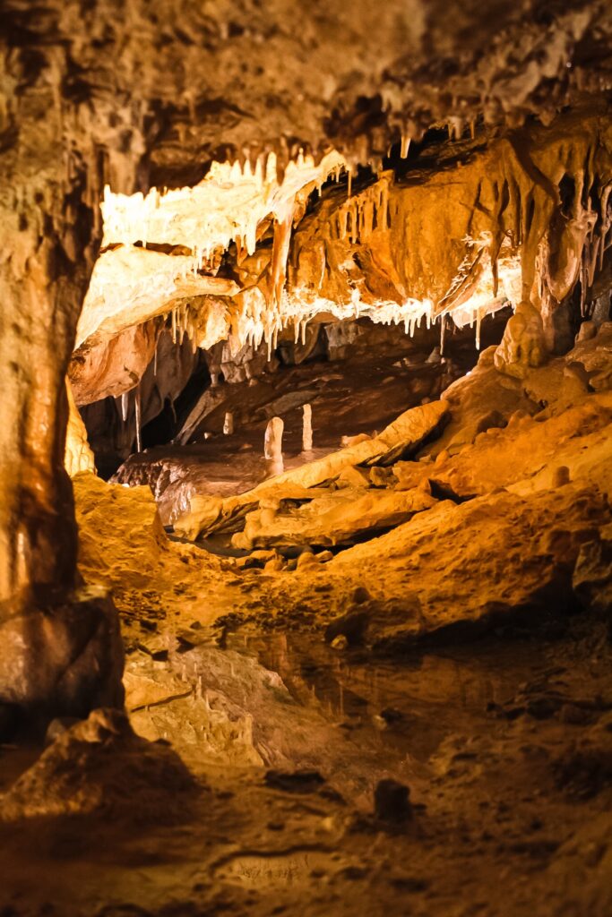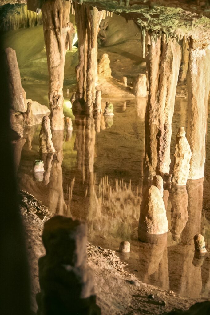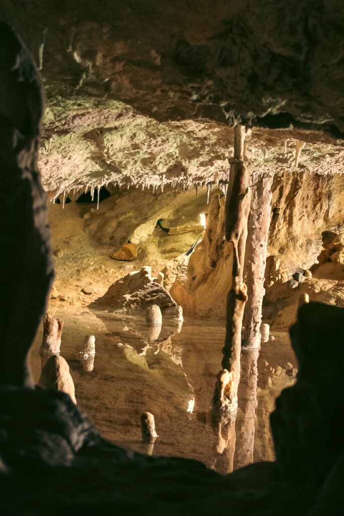 I processi di una grotta attiva includono anche la formazione delle caratteristiche stalattiti, stalagmiti e colonne, risultato della precipitazione del carbonato di calcio contenuto nelle soluzioni acquose che circolano nel sottosuolo: per intendersi, l’azione di “una goccia dopo l’altra”, per migliaia di anni.