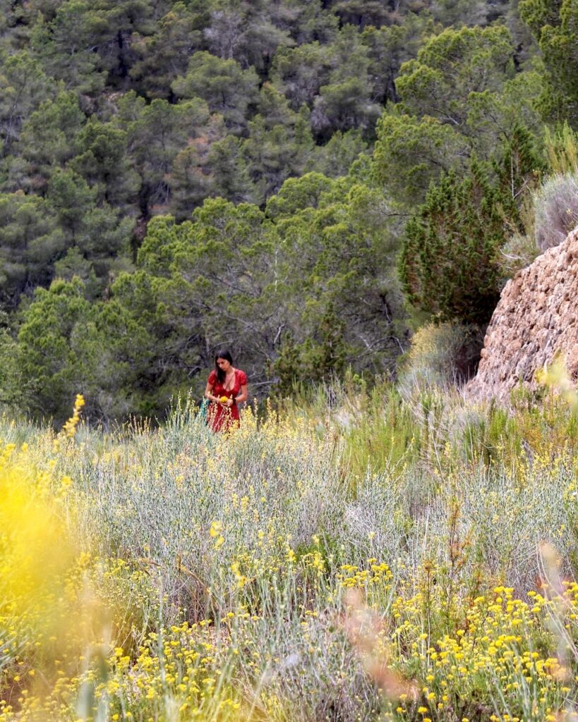 Un vero e proprio scrigno mediterraneo che ospita una flora autoctona che caratterizza il paesaggio, come gli ulivi secolari, e una fauna endemica preziosa, basti citare la Sargantana pitiusa, il simbolo dell’isola, conosciuta altresì come “lucertola pitiusa”, facile da avvistare sui muretti a secco e lungo i sentieri esposti al sole. Altri magnifici protagonisti popolano i cieli, come il falco della regina e la berta delle Baleari, così le terre e le acque, come il fenicottero comune che vive gran parte dell’anno negli stagni del Parco Naturale di Ses Salines, mentre nelle vallate dell’entroterra non è raro avvistare qualche esemplare del mansueto Podenco ibicenco, una razza autoctona di cane che risalta per il mantello rossiccio a macchie.