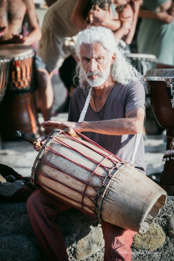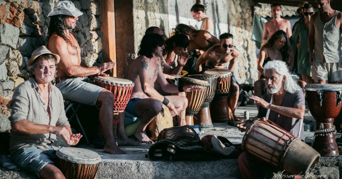 Esiste una connessione ancestrale con il ritmo delle percussioni, il loro suono corale può diventare un’esperienza mistica per chi si pone in ascolto. Solo musica, il resto lo crea l’atmosfera di un luogo magico a nord dell’isola, uno dei più belli dove ammirare il sole che si tuffa nel mare