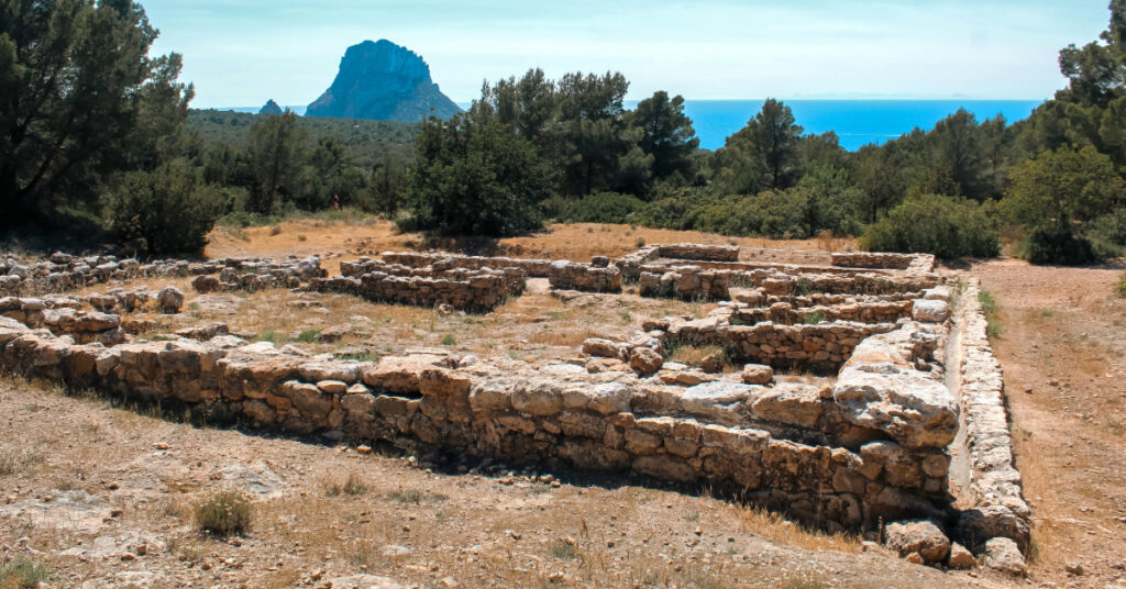 Tra macchie di lavanda e profumi mediterranei spuntano l'insediamento punico-romano e due necropoli. Pietre consunte dal sole e dal tempo, testimoni della vita che fu, un antico tesoro situato all'interno dell'omonima Riserva Naturale di Cala d'Hort, vegliato dall’isola di Es Vedrà