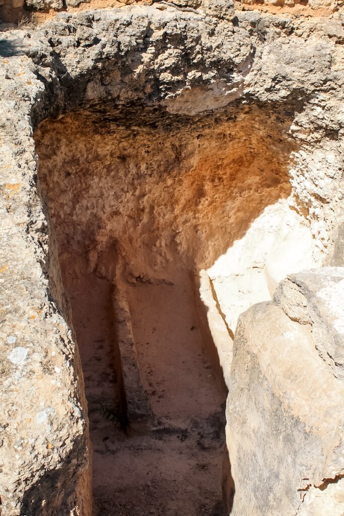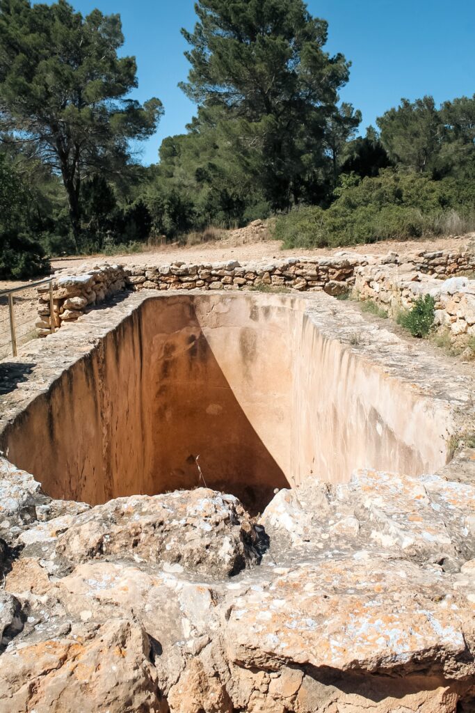 È un viaggio suggestivo tentare di rievocare le credenze, così i culti legati all’aldilà, questi ultimi attraverso il filo conduttore della storia. Tra le testimonianze più importanti nel sito archeologico di Ses Païsses di Cala d’Hort vi sono le necropoli. L’area punica si trova a circa 14 metri a est della struttura A, venne portata alla luce da Carlos Roman Ferrer tra il 1917 e il 1921: 18 tombe in 12 ipogei, tutte scavate nella roccia, con un ingresso rettangolare e una camera. Secondo gli studi, la necropoli fu attiva a partire dal periodo punico classico (V-IV secolo a.C.) e dalla prima occupazione dell’area fino a poco prima del 125/100 a.C. quando, in epoca tardo-punica, sembra essere stata abbandonata.